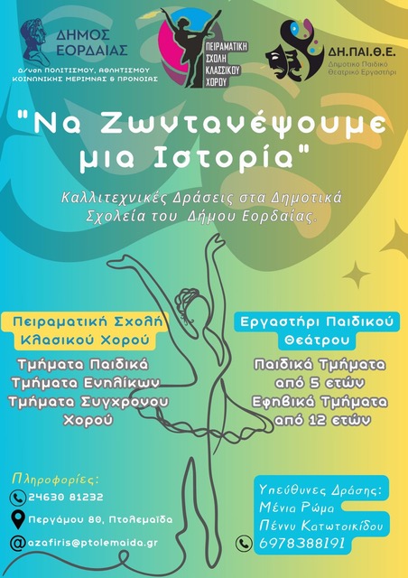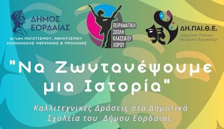Στο πλαίσιο της ενίσχυσης της θεατρικής αγωγής και της φιλαναγνωσίας, το Δημοτικό Παιδικό Θεατρικό Εργαστήρι (ΔΗ.ΠΑΙ.ΘΕ) της Διεύθυνσης Πολιτισμού, Αθλητισμού, Κοινωνικής Μέριμνας και Πρόνοιας του Δήμου Εορδαίας σε συνεργασία με την Αντιδημαρχία Παιδείας και την Αντιδημαρχία Πολιτισμού ξεκίνησε καλλιτεχνικές δράσεις σε πρώτη φάση στα Δημοτικά Σχολεία της πόλης, με τίτλο