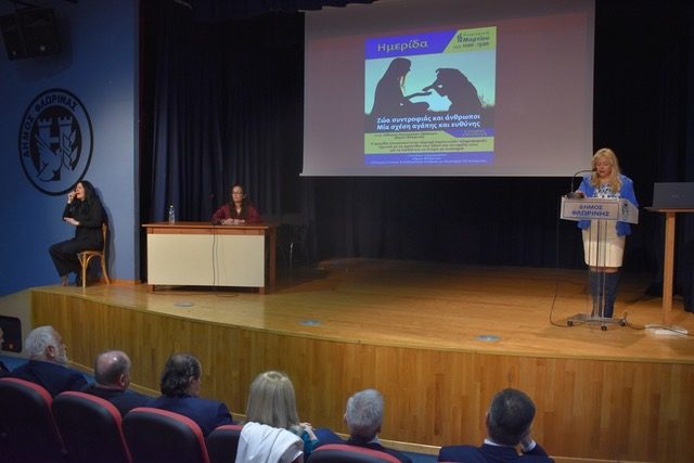 Αμέσως μετά, η πρόεδρος του Συλλόγου Γονέων και Κηδεμόνων Ατόμων με Αναπηρία ΠΕ Φλώρινας κα Αγνή Σιδηροπούλου ανέπτυξε το θέμα «Τα ζώα συντροφιάς και ο ρόλος τους στην οικογένεια του ατόμου με αναπηρία».
